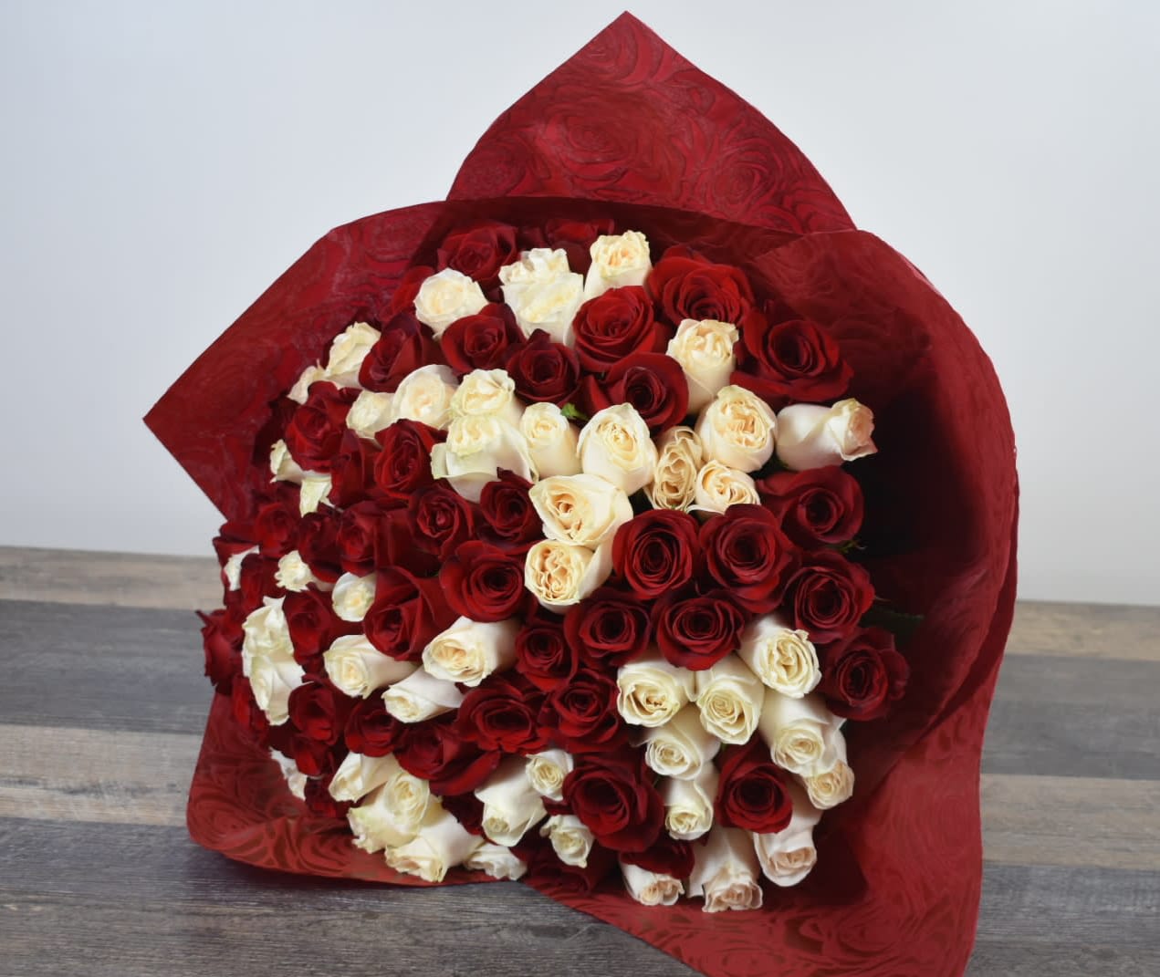 This beautiful mix of 12 red and 8 white roses - accented with Queen Annes Lace and adorned with a bold red. Up to 64 cash back Placing both red and white roses together symbolizes devotion and lasting unity of a one-of-a-kind love. This bouquet has 12 stems of Red Roses and 5.
