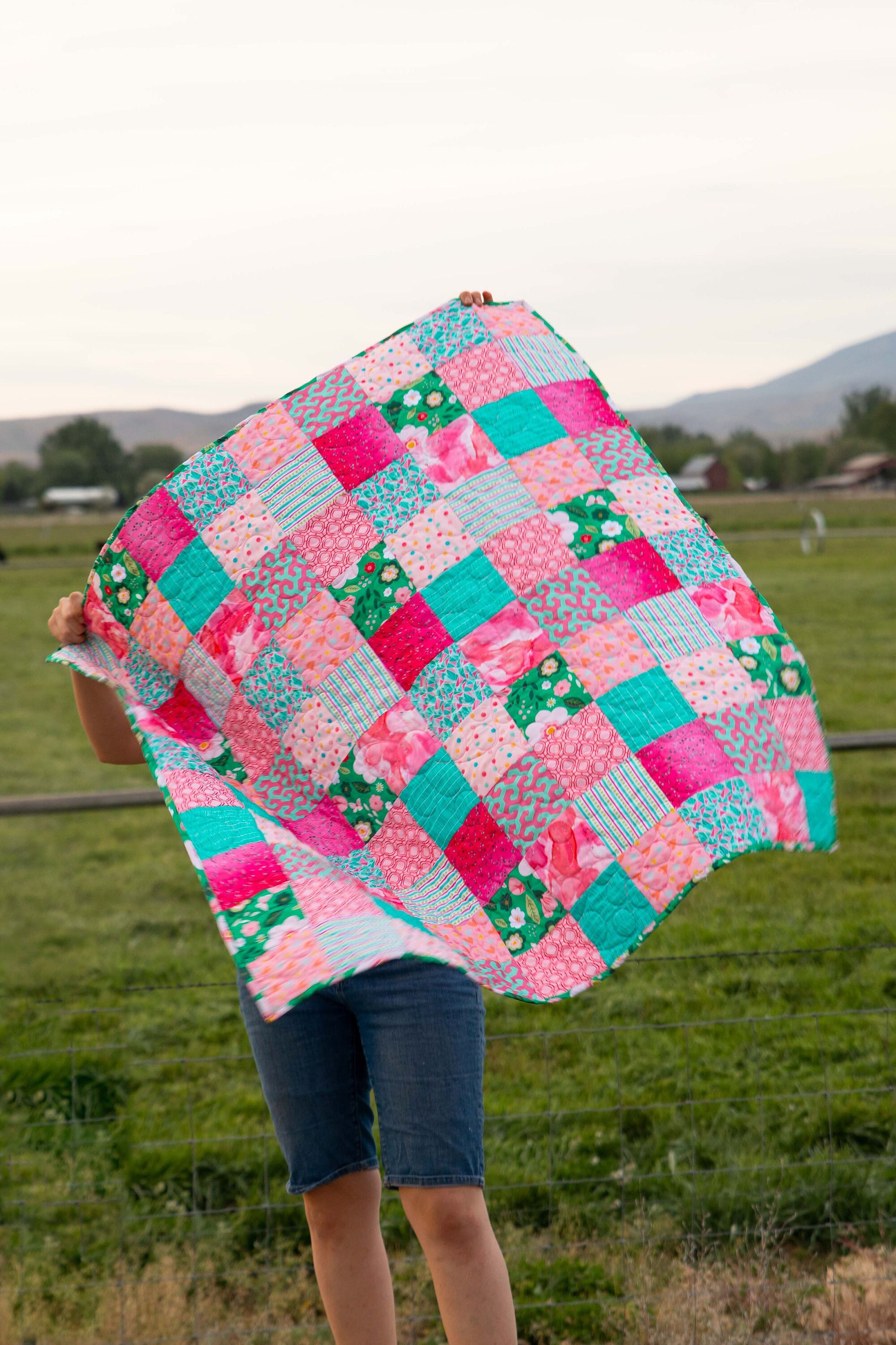 Classic Squares Quilt Pattern And Precut Fabric With Binding And Backing Easy Sewing Kit